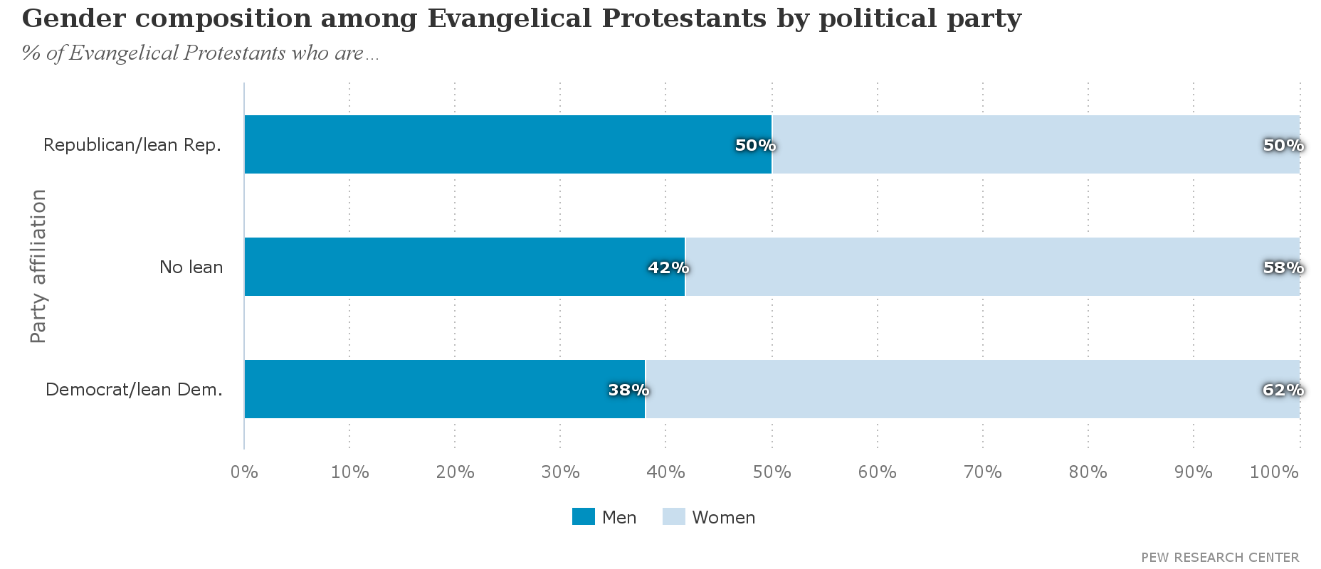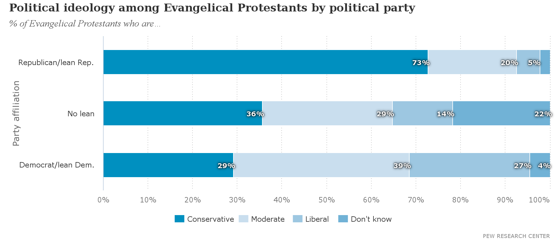 Pew offers many more interactive charts on evangelical views based on party affiliation.