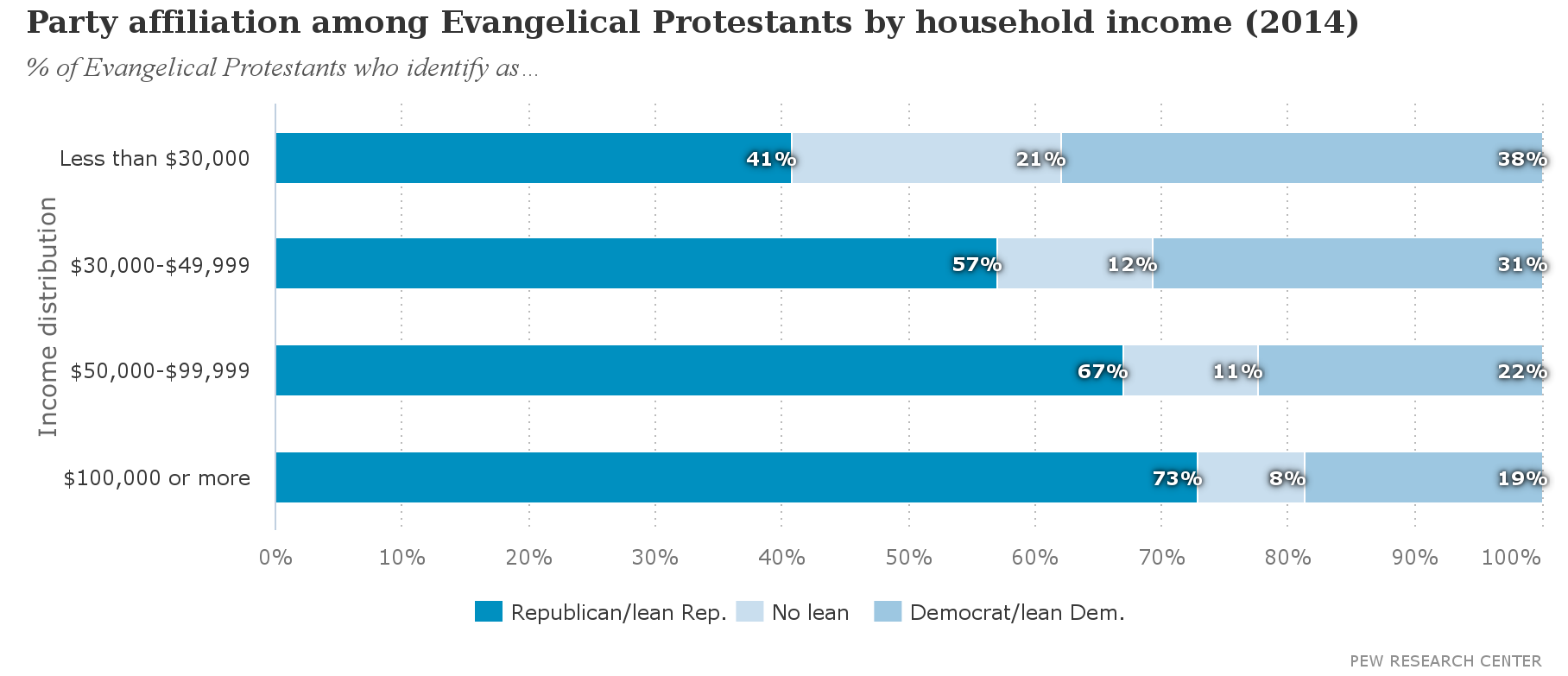 Evangelical Democrats are more likely to have a lower income than evangelical Republicans: