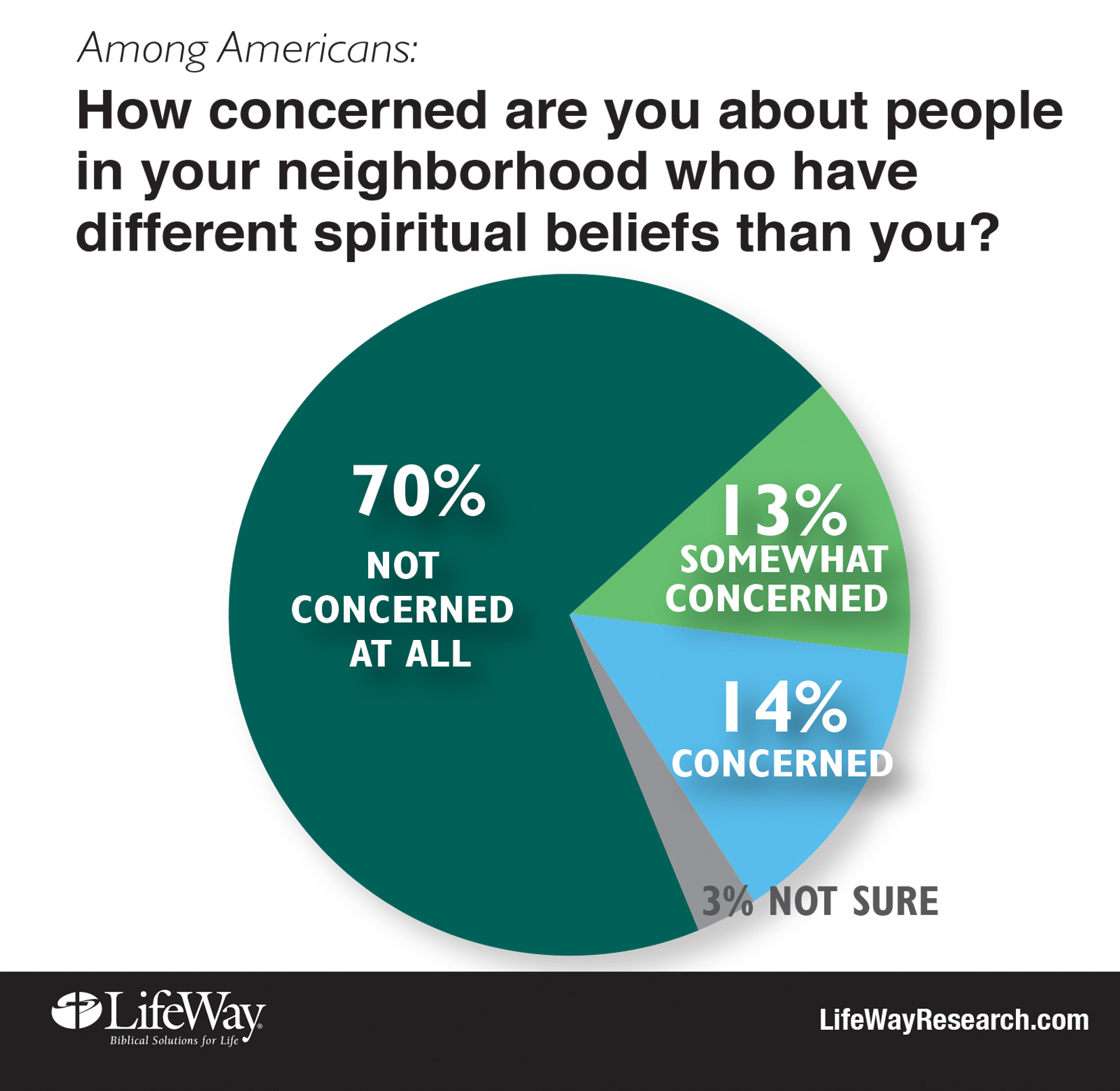 - Seven in 10 Americans say they are “not concerned at all” if their neighbors hold beliefs different from their own. Six in 10 (61%) say they aren’t concerned if their family has different beliefs.