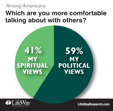 LifeWay Research surveyed 1,004 Americans in order to compare how often Americans talk to others about politics to the number of times they talk about spirituality.