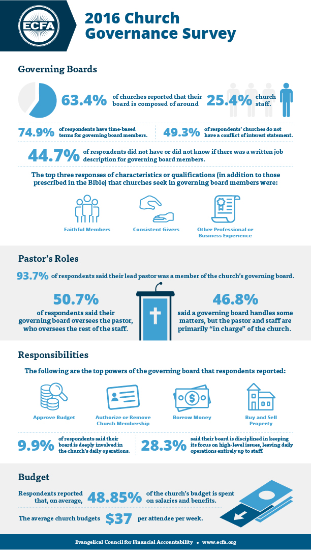 For the first time, ECFA asked board members and church staff from more than 500 churches how their congregations are governed. Here’s a snapshot: