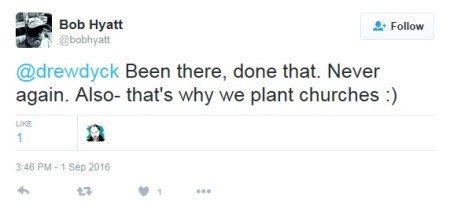 Still, the conversation was fascinating, with pastors on both sides of the issue making excellent points. One pattern I noted was the role age and experience seemed to play. By and large, seasoned pastors were more open to taking a congregation they wouldn’t otherwise attend. Perhaps time spent in the trenches of ministry gave them a willingness to surrender preferences and trust God. On the other hand, it could be that younger pastors placed a greater premium on authenticity, and so insisted on fidelity to a particular congregation, regardless of one’s role within it.
