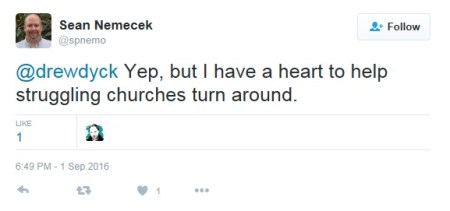 In my experience, pastors are usually reticent on social media. They’re busy, and as public people, they can’t weigh in on every issue. This time was different though. Dozens of responses poured in, many agreeing with my young pastor friend. Here’s a sampling:
