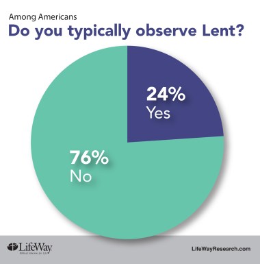Three-quarters of Americans (76%) say they don’t typically observe Lent, according to a new survey from LifeWay Research.