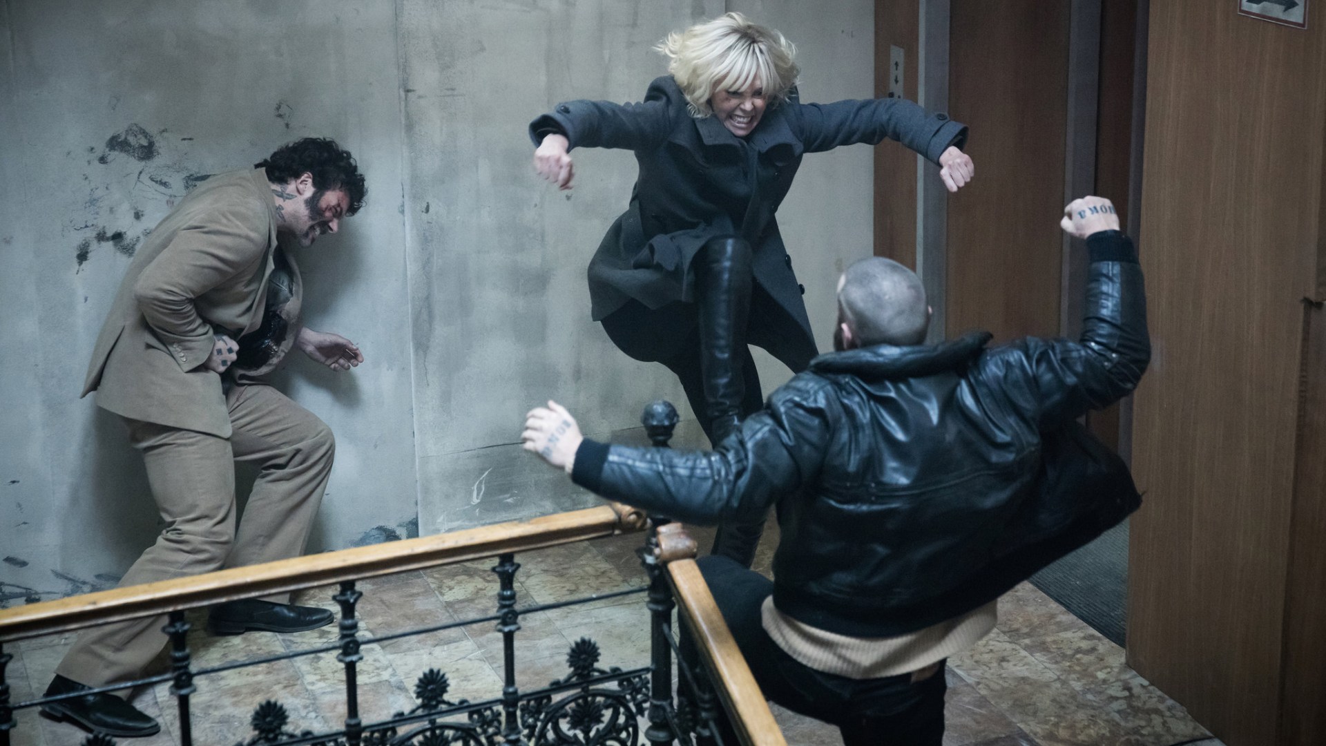 Atomic Blonde is a highly stylized, spy-versus-spy picture based on a graphic novel. Though shot in color, the film relies on a restrained color palette and boasts carefully blocked frames and noir-inspired lighting. Set in the divided Berlin of 1989, the film also draws on an array of ’80s references, from shoulder-exposing sweatshirts and stiletto ankle boots to a soundtrack so full of beloved ’80s hits that licensing them all ranks as one of the film’s most impressive stunts.