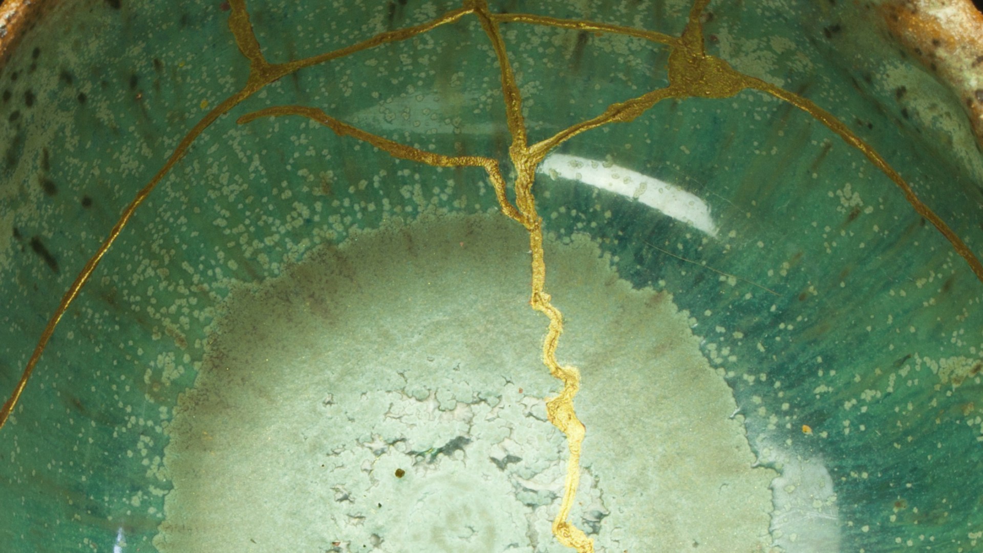 In Japanese Kintsukuroi pottery, when a vase breaks, it is not discarded. Instead, the potter takes a gold or silver lacquer to reseam the broken piece back together.