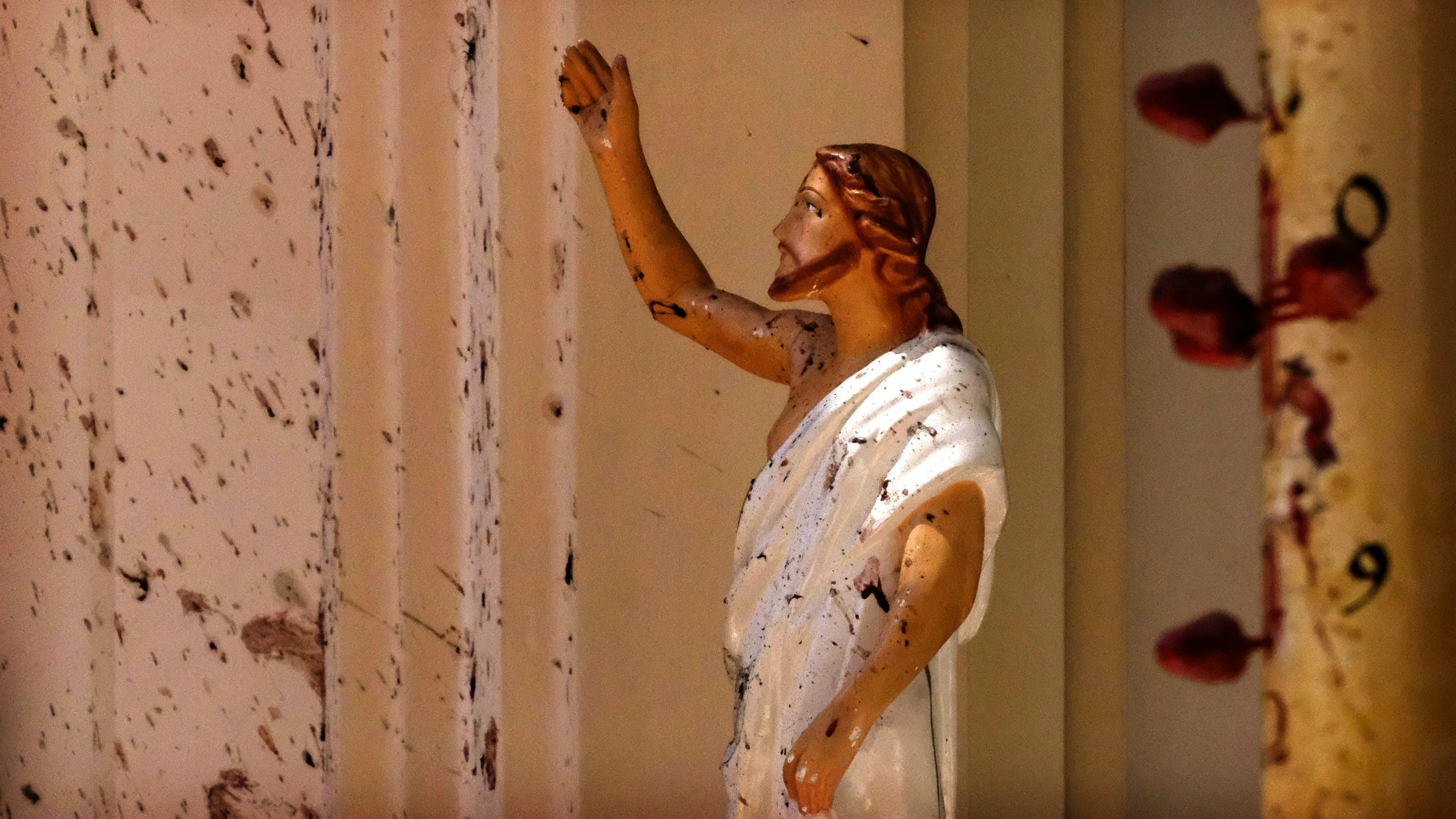 Blood splattered the walls after a suicide bomber attacked St. Sebastian’s Church in Negombo, Sri Lanka, on Easter Sunday.