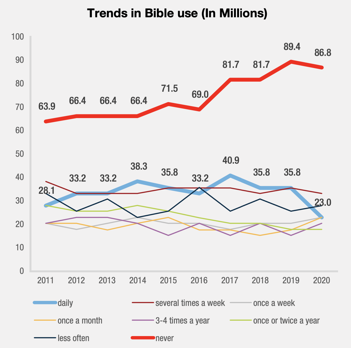 Daily engagement had already been declining, but worsened during the pandemic, according to the annual State of the Bible report.