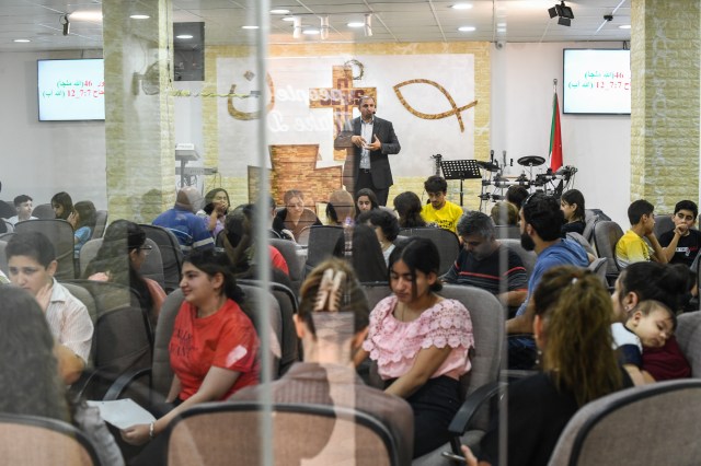 Ibrahim also pastors Church of Glory, an Assemblies of God congregation nextdoor. With his soft voice, salt-and-pepper scruff, and bushy eyebrows, he greets refugees like an eloquent, Spirit-filled bear. The Syrian conflict, coinciding with the rise of Islamic State militancy in Iraq and Syria, sent fresh waves of the persecuted to Jordan. Pastor Haytham invited Ibrahim to join Marka’s visiting team.