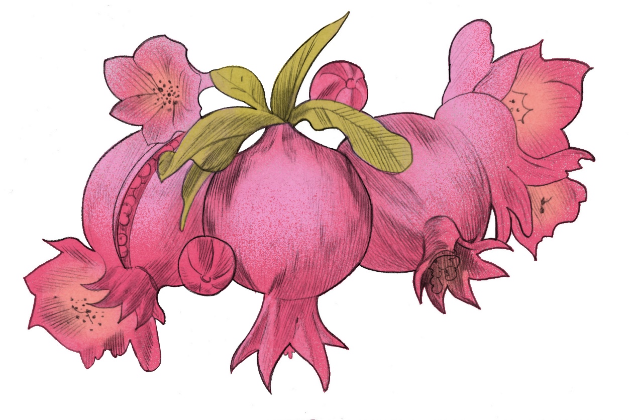 Pomegranates. Mixed Media (Pencil and Procreate), by Diego Best, Sep. 2025.
