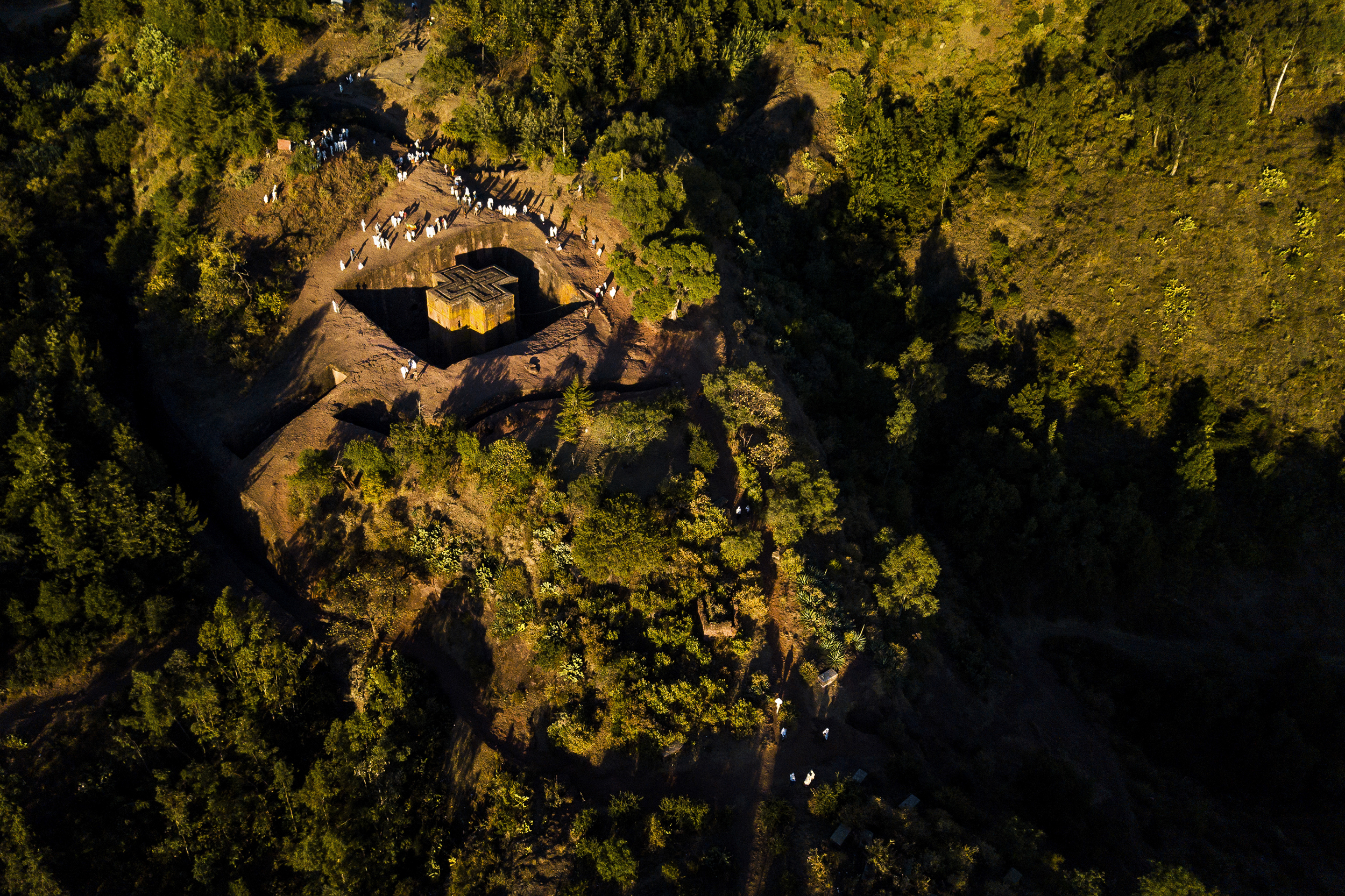 The distinct cruciform structure of Biete Ghiorgis is one of 11 churches around Lalibela that are part of the UNESCO World Heritage Site.