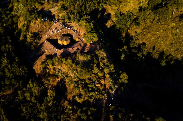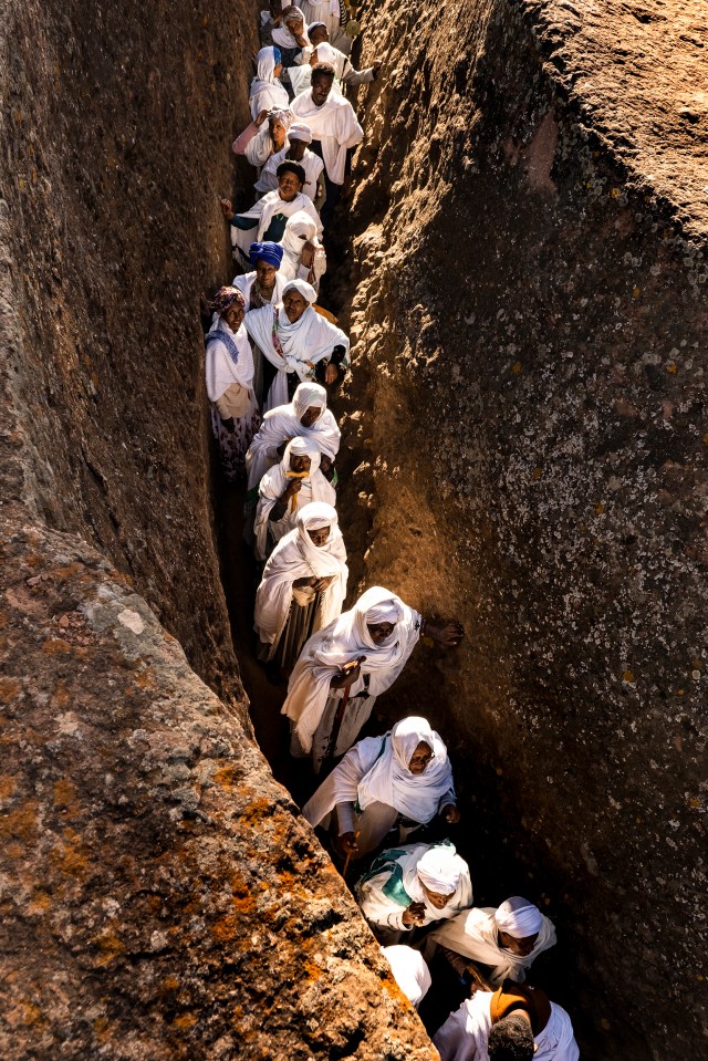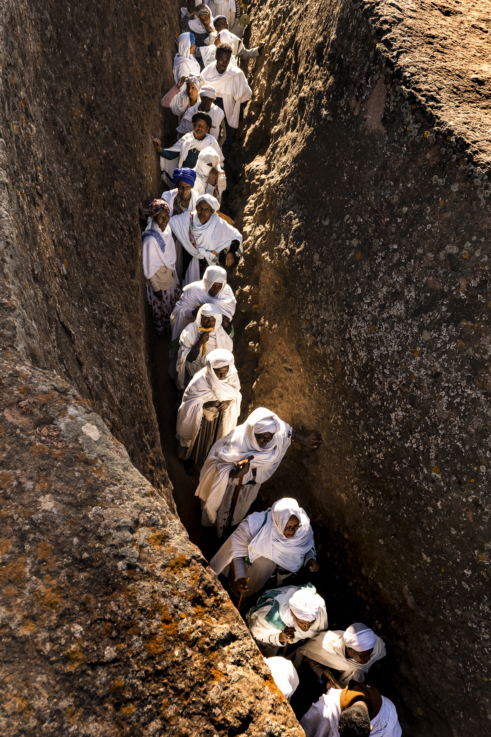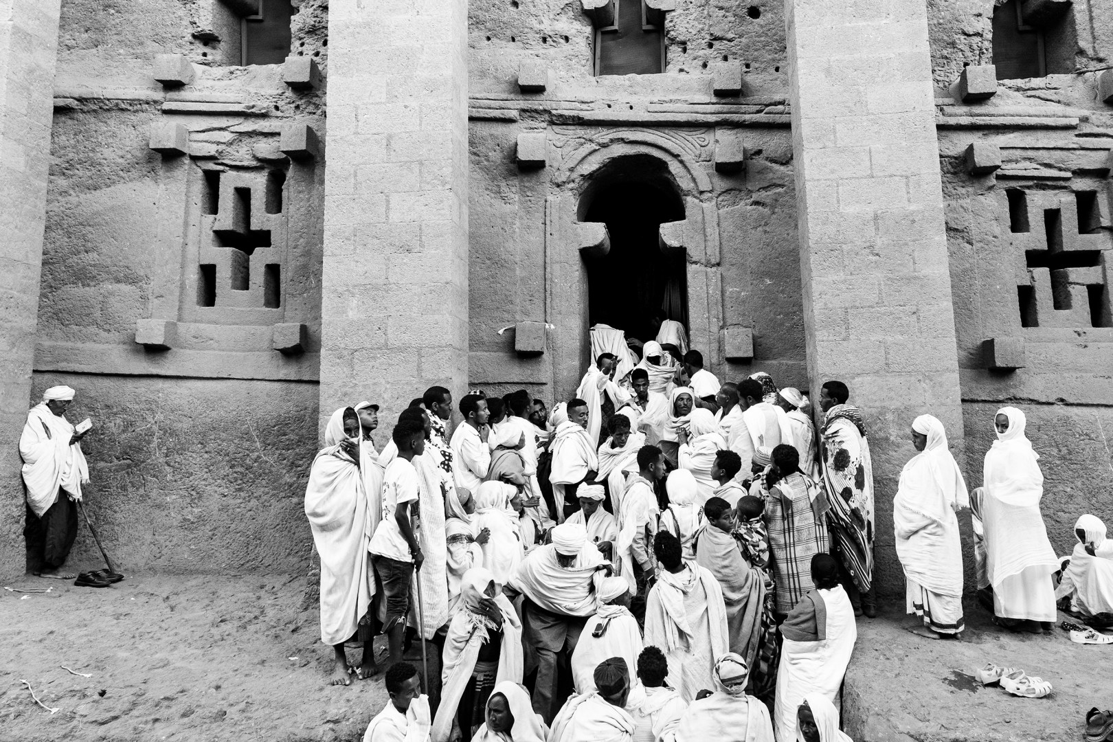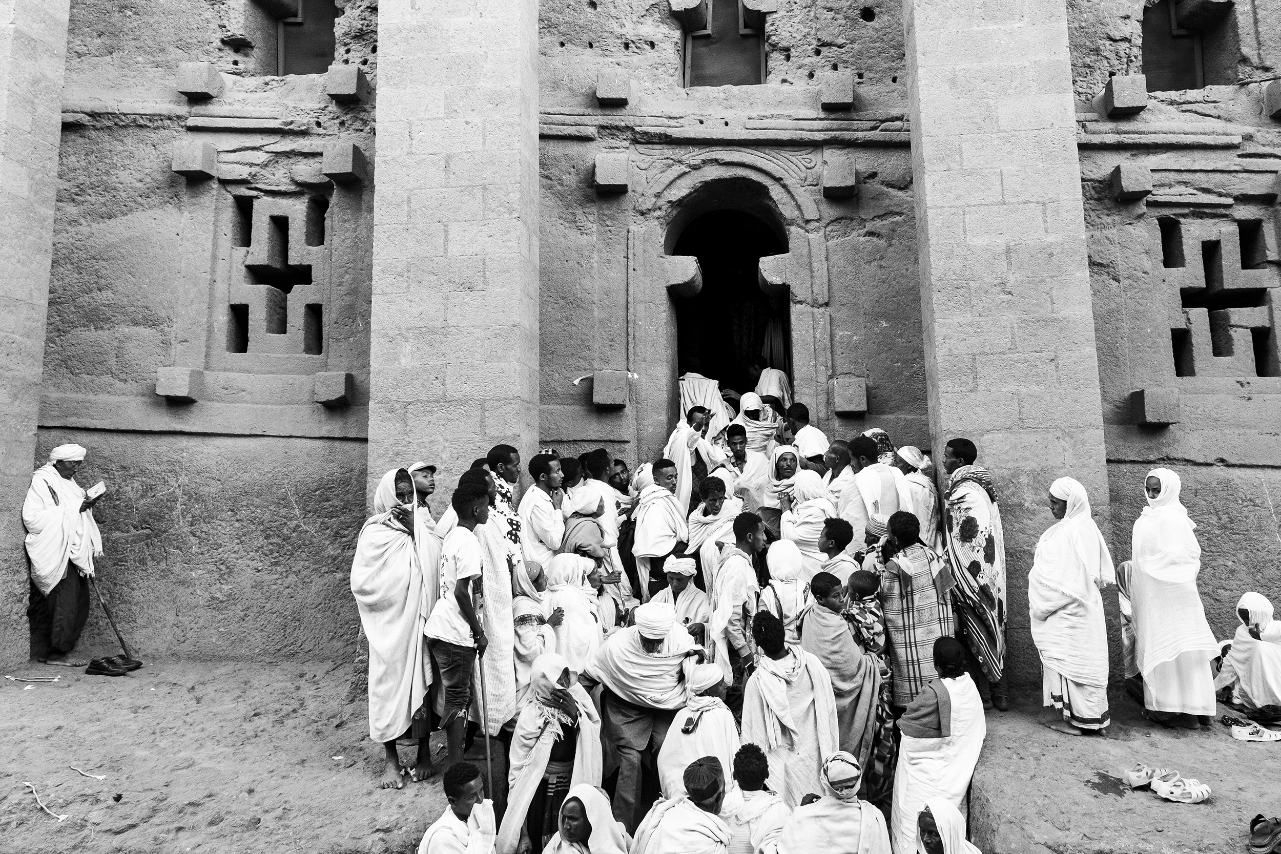 Pilgrims make their way in and out of Biete Medhane Alem (House of the Saviour of the World), the largest of the monolithic churches in Lalibela.