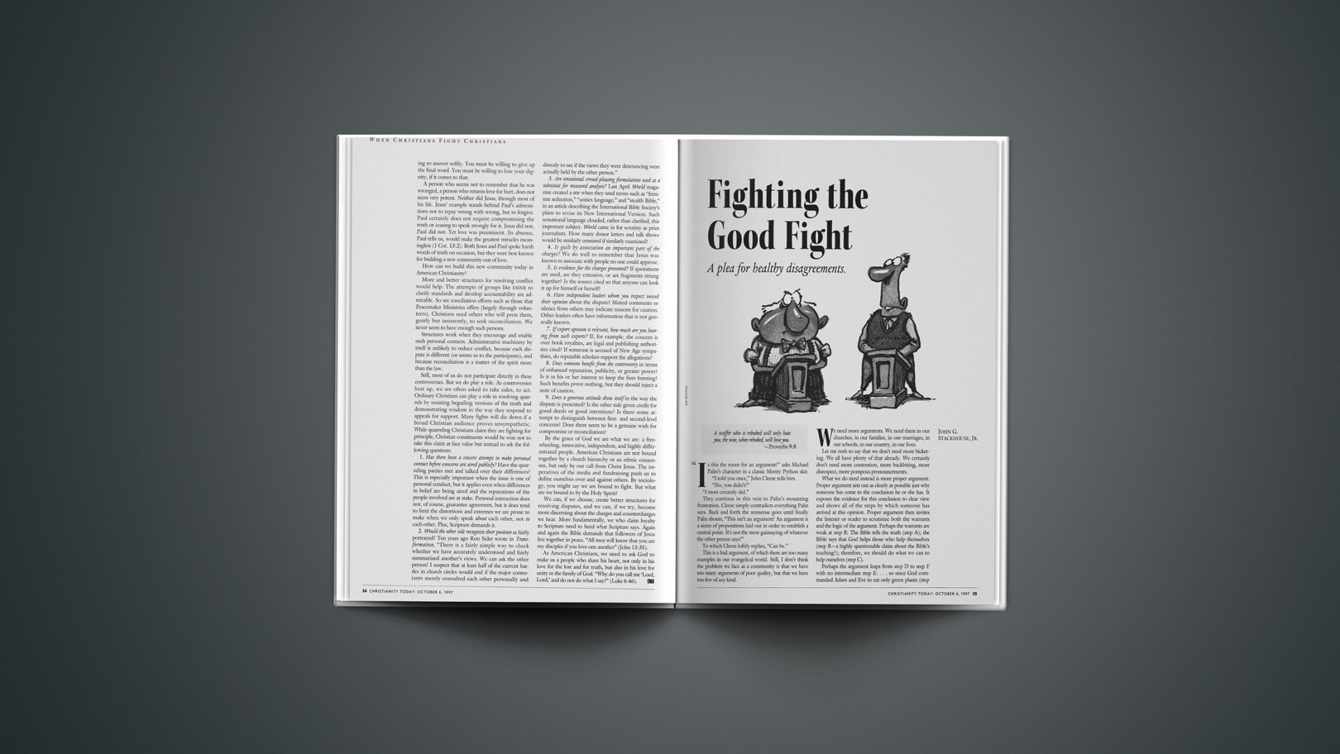 And so, as a seeker of gracious, edifying discourse in our friendships, families, churches, and workplaces, I invoke the magisterial Pythons once again and cry, “I’d like to have an argument, please.”