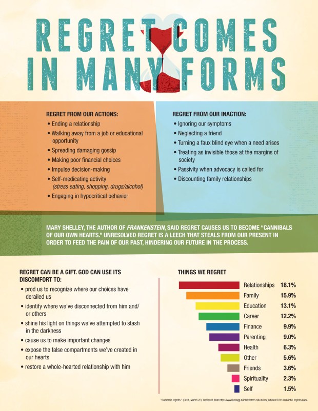We sing about how we once were lost, and have now been found by our Savior. Our churches encourage us toward bold faith and celebrate stories of dramatic transformation. These are wonderful realities, but they can leave some of us with the impression that there isn't room in our faith communities to deal with the effects of lingering regrets we're carrying from before we came to faith in Christ. And what of the regrets we've accumulated during the time in our lives when we we've been committed Christians?