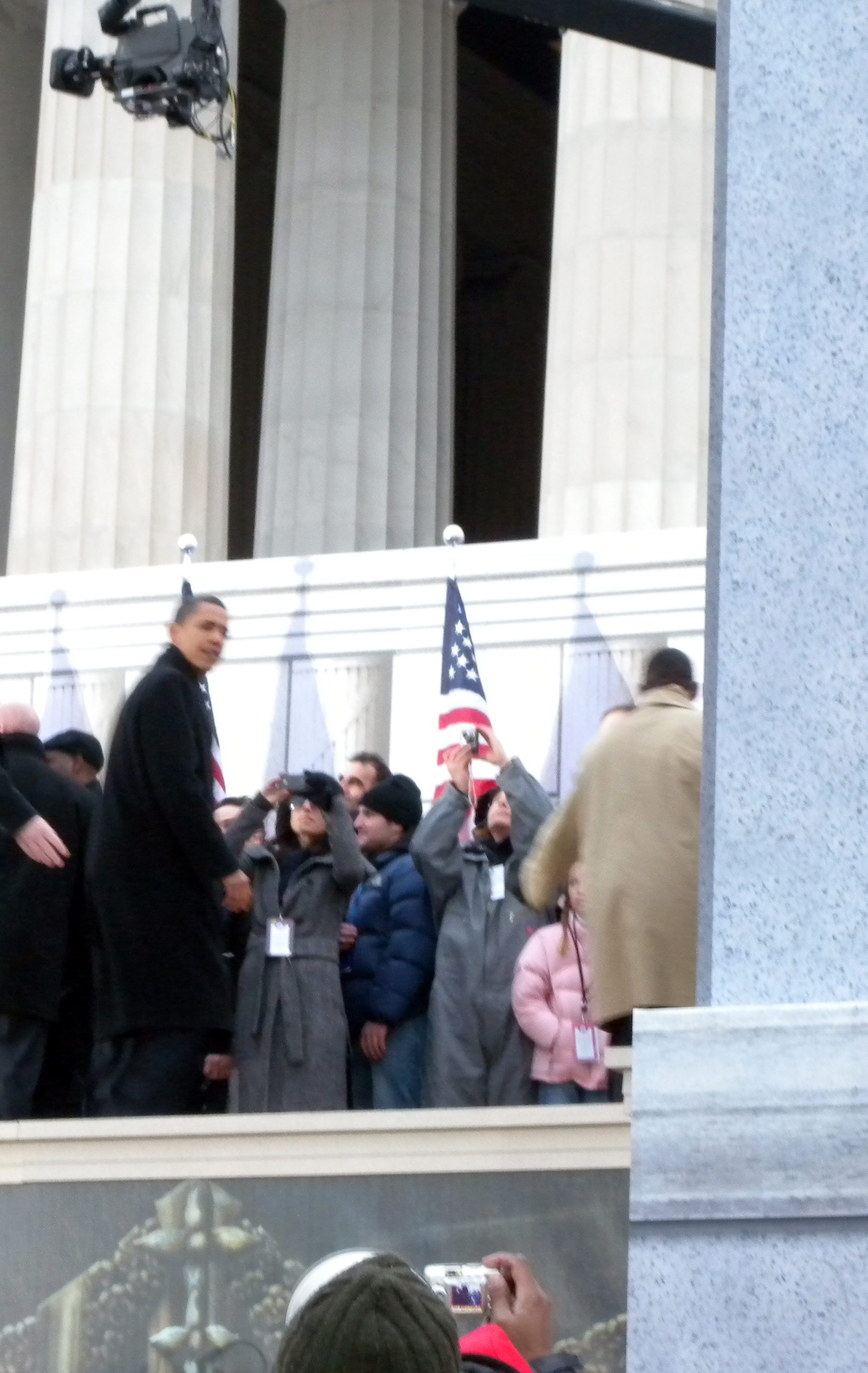 My apologies for the blur, but I don’t have a monstrous camera. This is Obama just before he leaves the Lincoln Memorial.
