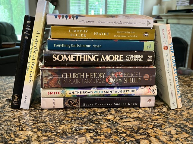 - On the Road with Saint Augustine by James K. A. Smith: What a fantastic find! A book that captures two of my favorite things, travel and the amazing mind of St. Augustine. Smith takes the reader on a journey to the places and ideas that molded Augustine’s restless, God-seeking heart, along with ancient and contemporary thinkers asking the same questions. I am ready to pack my bags and go with them, after leaving the island, of course.