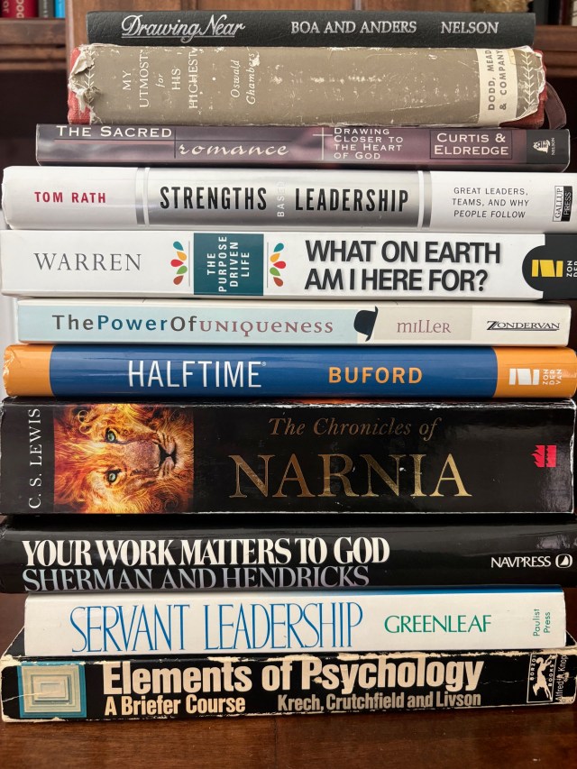 - The Purpose Driven Life by Rick Warren: Reading, re-reading, and studying this book with small groups at church took my faith deeper and challenged my life in new ways each time. Knowing that we have purpose in life has consistently been shown to be a differentiating factor in motivation, engagement, and fulfillment.