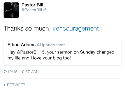 9) Retweet a compliment about your sermon, book, or blog post with a big “thank you!”