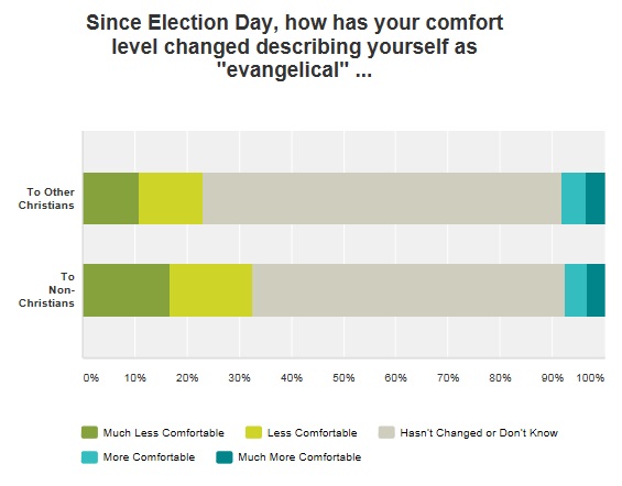 - Since Election Day, how has your comfort level changed describing yourself as “evangelical” to other Christians?