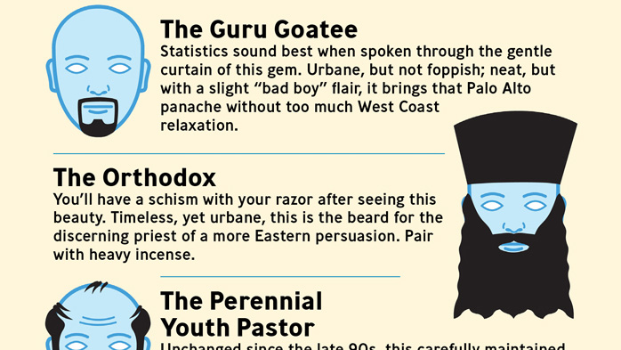 Article Share Share arrow_down facebook_grayscale Facebook x_grayscale X whatsapp_grayscale WhatsApp telegram_grayscale Telegram email Email link Copy Link gift Gift Article Beards of Ministry A field guide for pastoral facial hair. Paul Pastor, illustrated by Kyle Rohane Leadership Journal February 14, 2013 Illustrated by Kyle RohaneIllustrated by Kyle Rohane Posted February 14, 2013 close Beards of Ministry expand Full Screen 1 of 1 Illustrated by Kyle Rohane