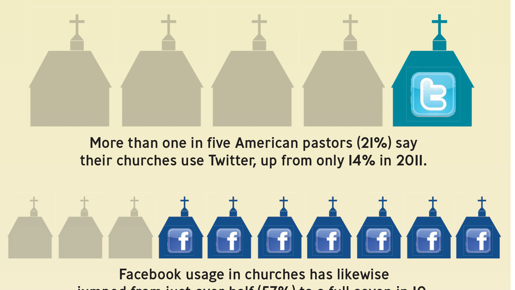 More than one in five American pastors (21%) say their churches use Twitter, up from only 14% in 2011.