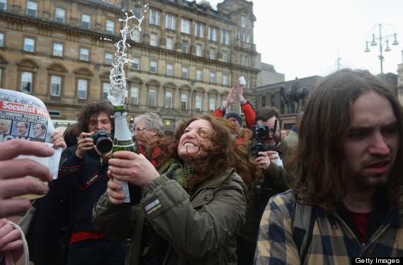 GLASGOW, UNITED KINGDOM – APRIL 08: A woman sprays cava as members of the public gather in George Square to mark the death of Baroness Margaret Thatcher on April 8, 2013 in Glasgow, Scotland. It has been confirmed that Lady Thatcher has died this morning following a stroke aged 87. Margaret Thatcher was the first female British Prime Minster and governed the UK from 1979 to 1990. She led the UK through some turbulent years and contentious issues including the Falklands War, the miners’ strike and the Poll Tax riots. (Photo by Jeff J Mitchell/Getty Images)Written before the Boston bombings, here is a sobering meditation on our death-celebrating culture. The sympathetic response to the Boston attacks from traditional U.S. adversaries including Cuba, Russia, and even the Taliban, offers an interesting recent angle on Kyle’s point.