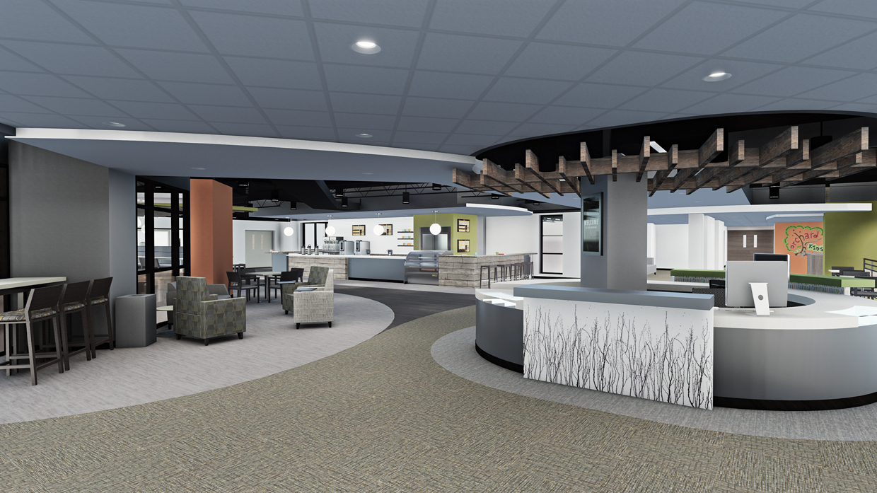 Community Christian Church—Naperville Yellow Box, in Illinois, added a first-and second-floor lobby and a training room when they renovated their church in 2014. The lobbies feature sturdy, high-top tables with seating for four to six people—perfect for a meeting or to plug in with your laptop. Naperville Yellow Box also features a glass-enclosed training room, which is tech-ready with video capabilities and Wi-Fi and seats up to 40. The church invites local businesses to use the room for training events and meetings.