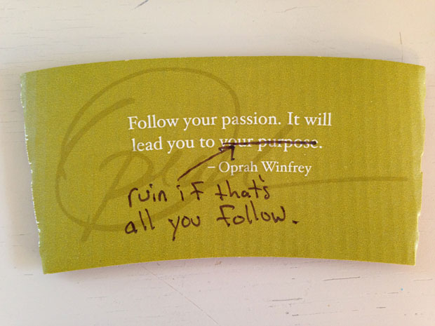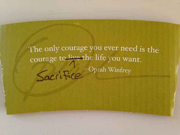 I usually like quotes, but this one was bad—a dreadful cliché masquerading as wisdom. My half-wakened brain reeled. I had a dilemma: go without a java jacket and burn my hand or contemplate Oprah’s “wisdom” all morning. A classic first world problem, you might say. But hey, suffering is suffering.