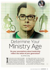 It is possible that your “ministry age” is incongruent with your actual age. This is precisely the intent of the quiz. Ministry perspective may, or may not, be a direct product of one’s generation. A younger leader may fall into the Traditional or Pragmatic categories because he or she is more concerned about doctrine or effectiveness. Similarly, an older leader may discover he or she has more in common with those younger in spirit. In either case a better understanding of one’s own leadership style is critical for healthier team dynamics.