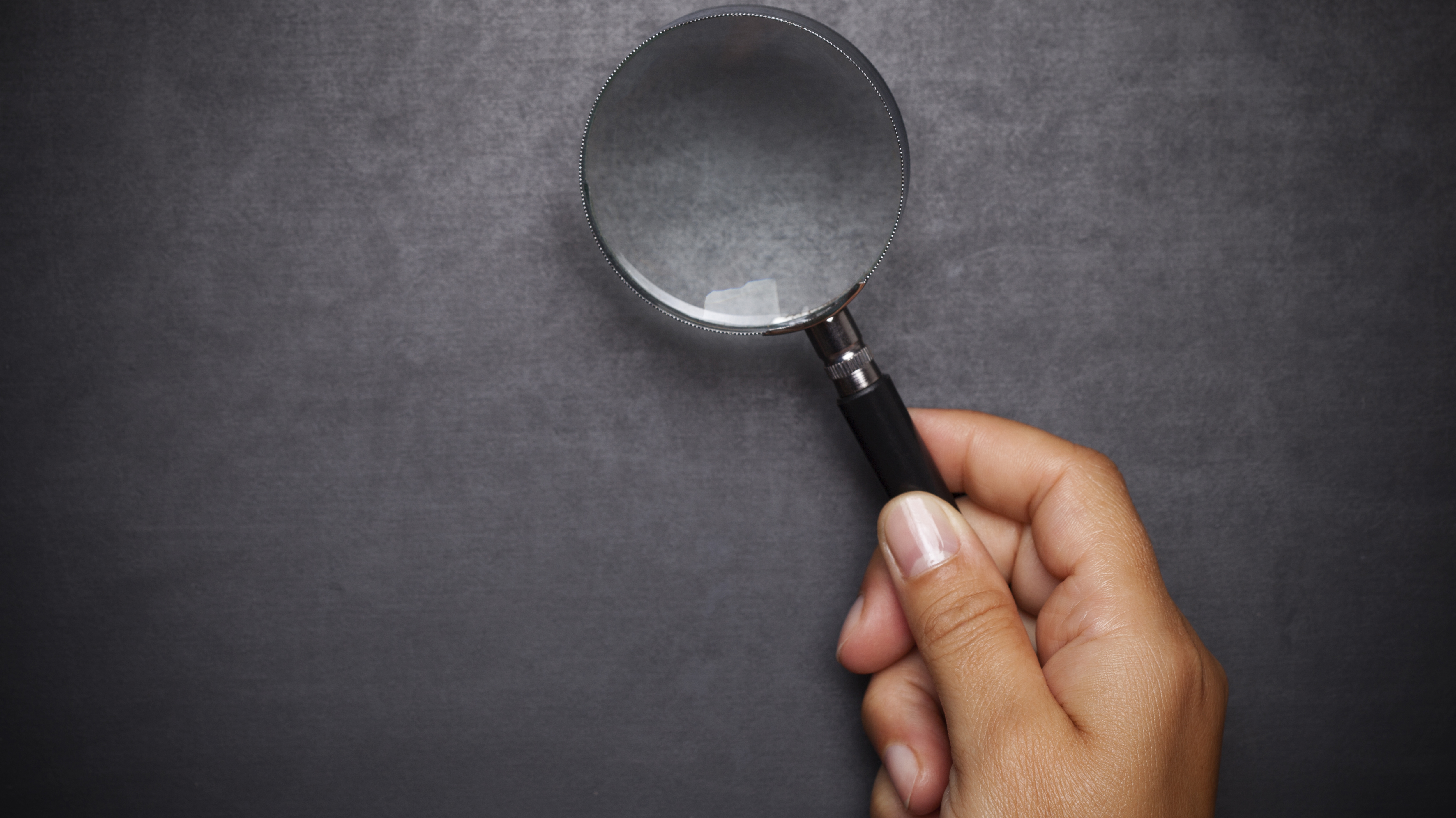 Hand with Magnifying glass on blackboard and copy space