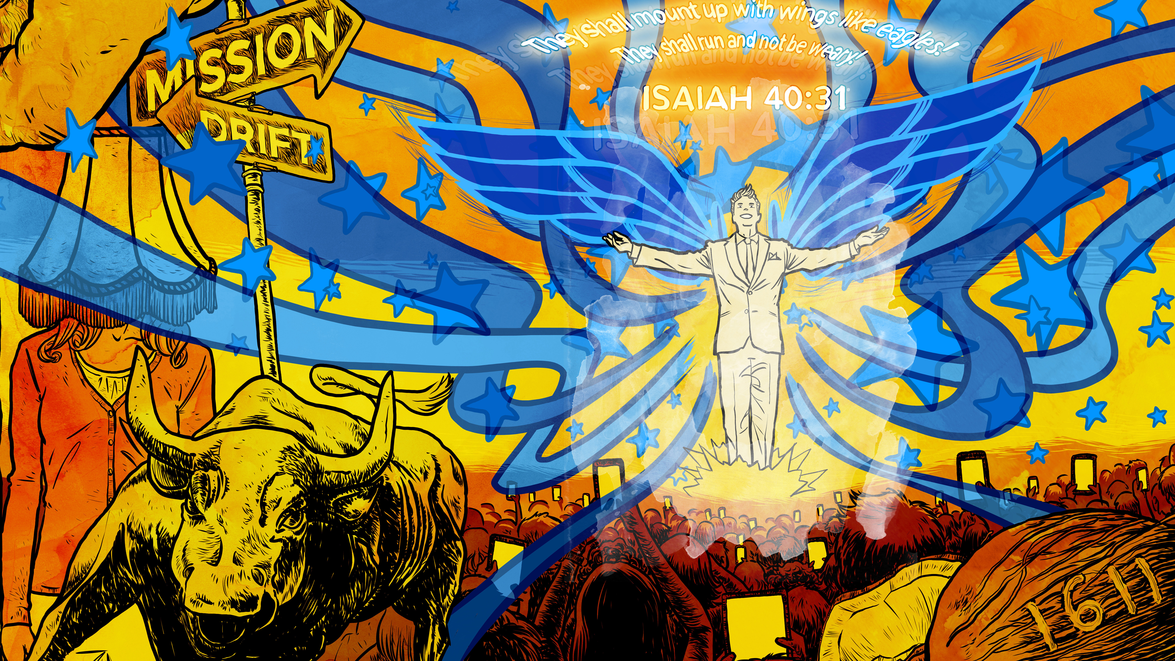 The projected images of the band members flicker and fade. The pastor walks onstage, smiling and asking how everyone is feeling this morning.