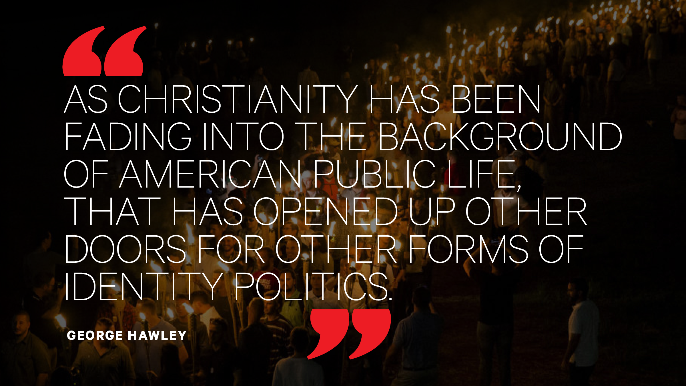 “The alt-right is now mostly ignoring the religious question,” said George Hawley, the author of the forthcoming book, Making Sense of the Alt-Right. “That sets it apart from earlier far-right movements. Obviously, the KKK presented itself as an explicitly Protestant movement. … The alt-right seems to be of the view that Christianity is becoming marginally irrelevant, at least in American politics, and as such, it seems to be largely avoiding the subject.”